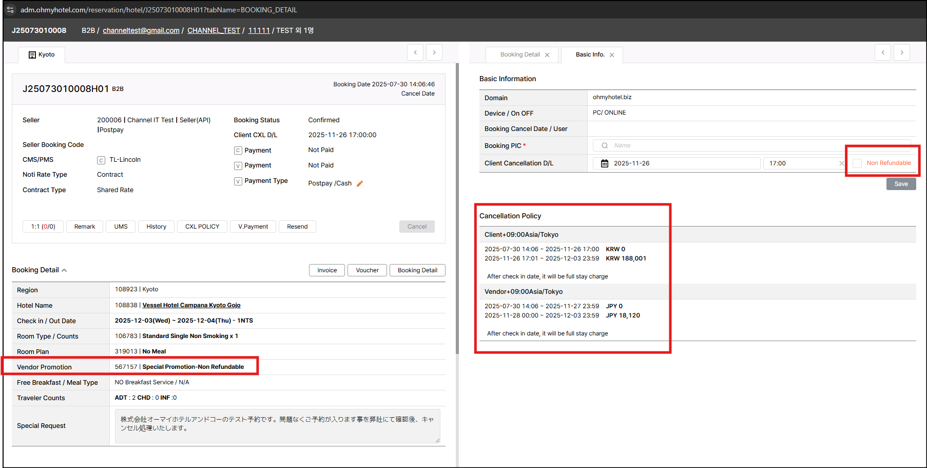 JP team made test booking under non-refundable policy but the cancellation policy of the booking was incorrected when it was made.