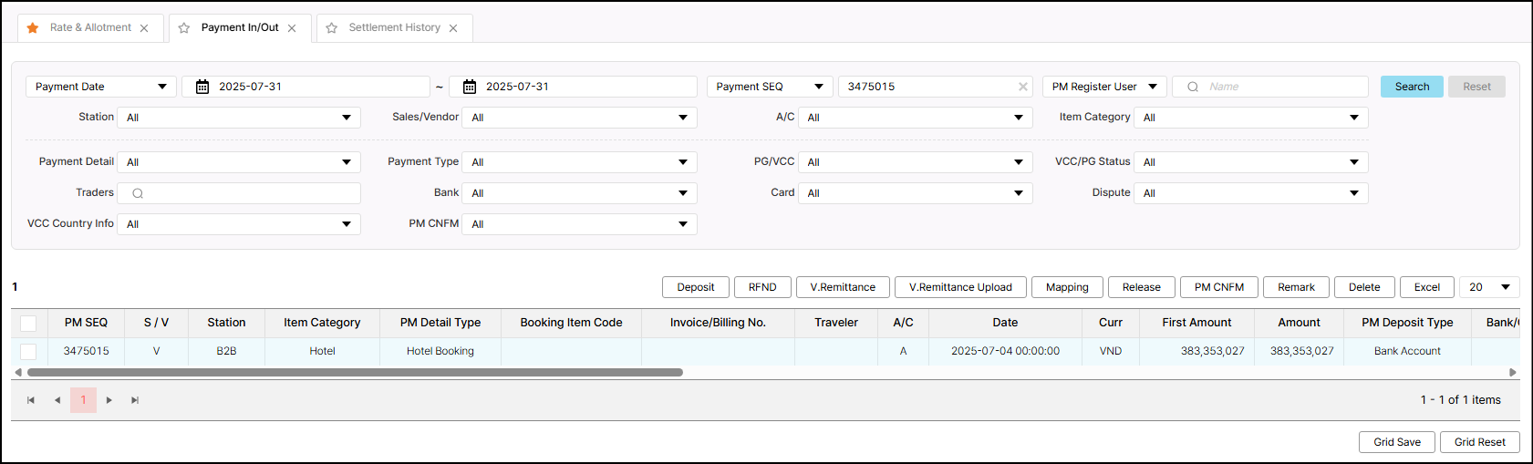 [VOC]HIGH: ID 983134_Payment for 01 new booking(s) Jul 04,2025: 2,754,000 VND
