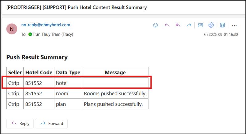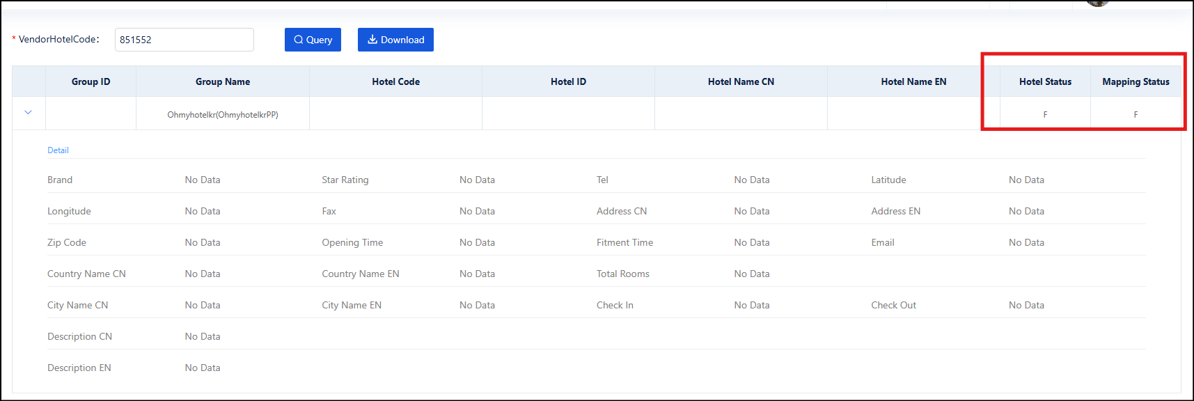 Re-checked on Ctrip mapping page, the mapping status is Fail.