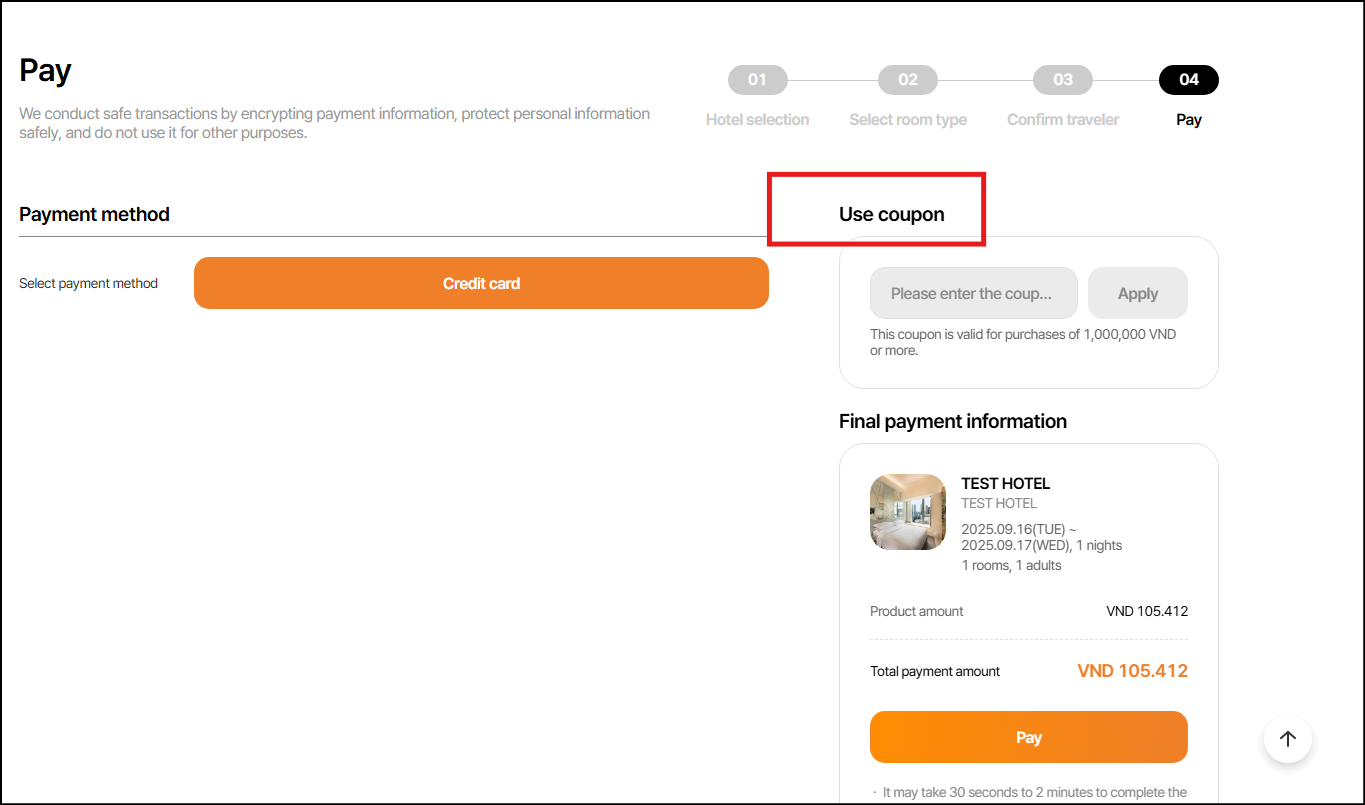 1-3) Nút '쿠폰 적용'