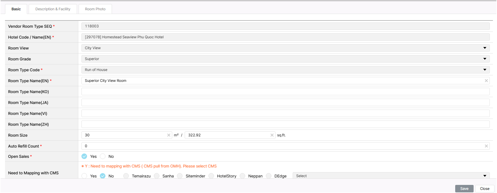 Please kindly assist to change the Room type Code of 297078 - Homestead Seaview Phu Quoc Hotel as below: