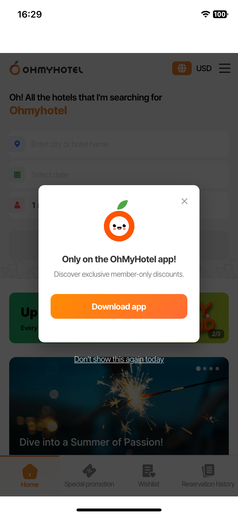 User khi vào bằng app không hiển thị popup này.