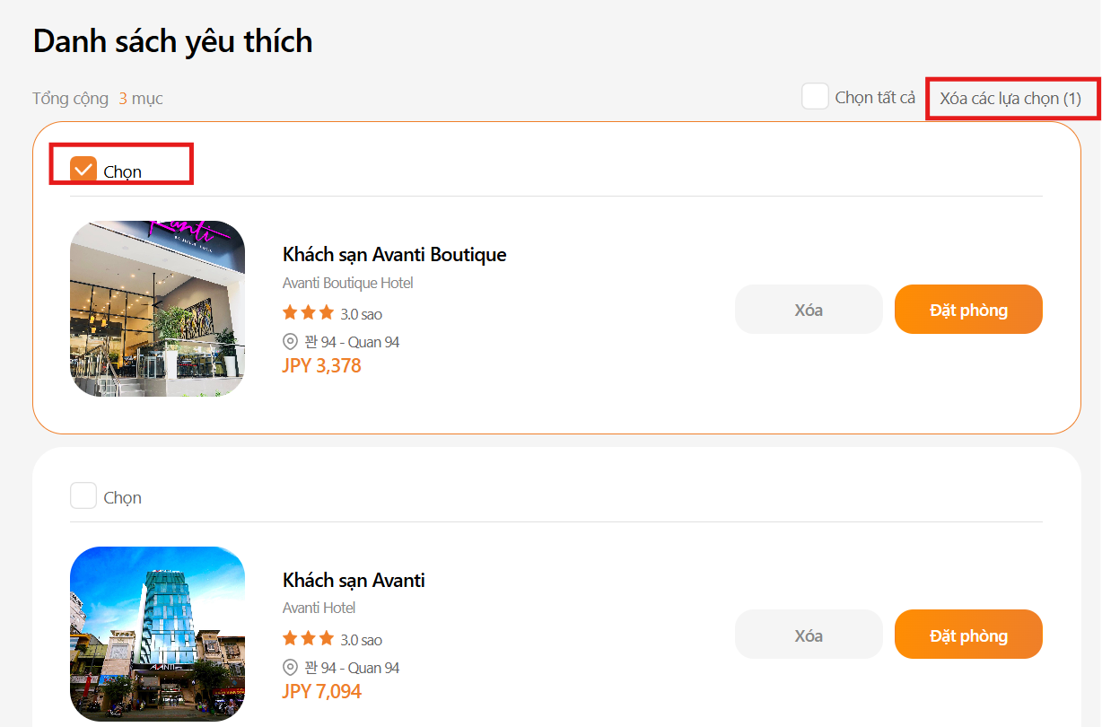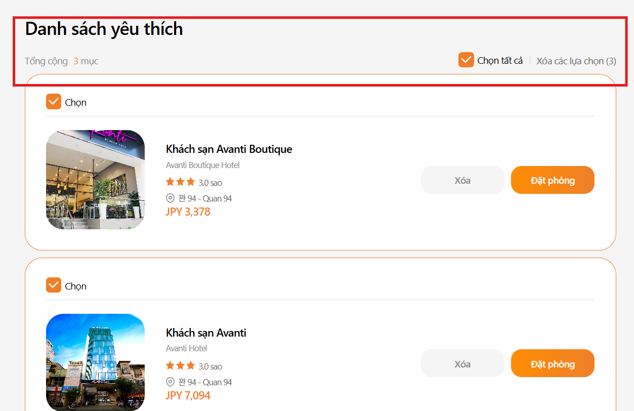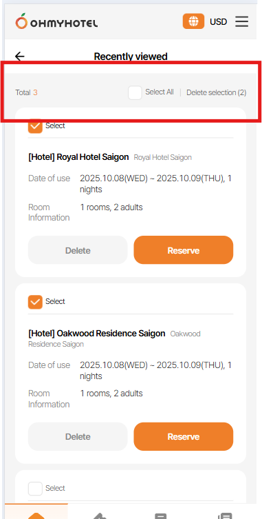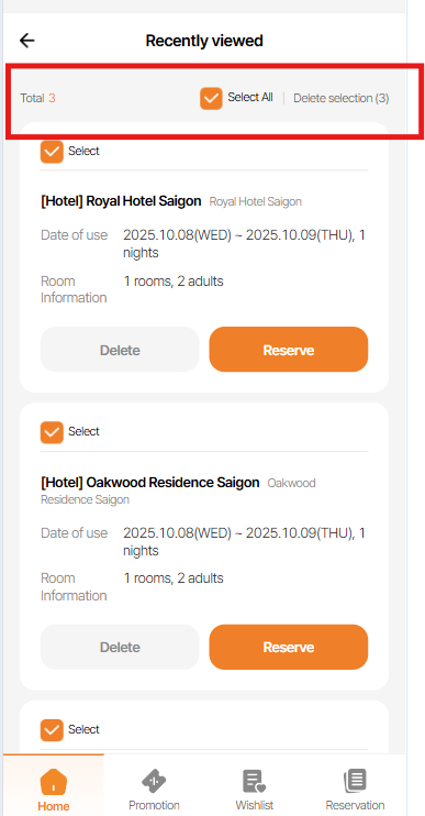 PC/MO: Sản phẩm xem gần đây - không có mục select, chỉ có thể click nút X để xóa từng items hoặc xóa toàn bộ