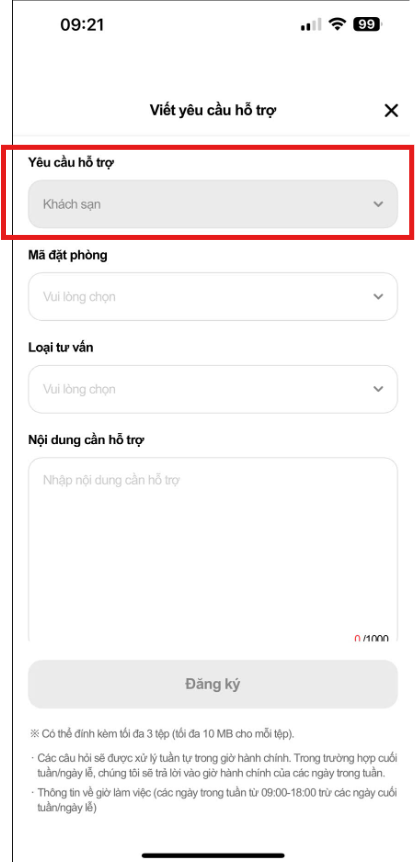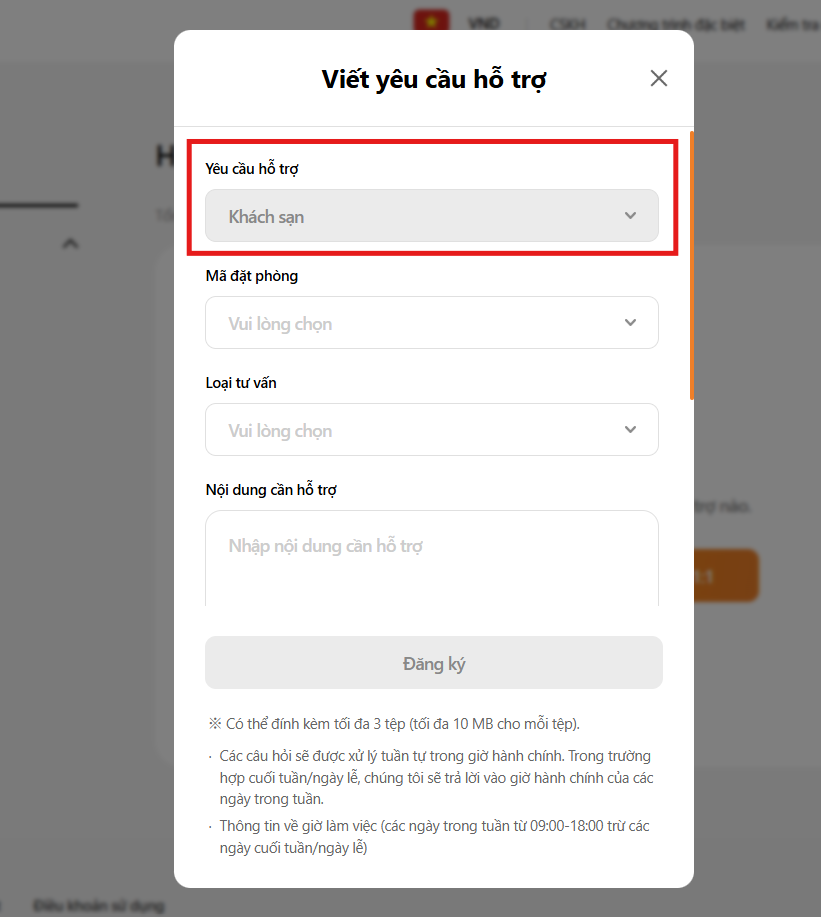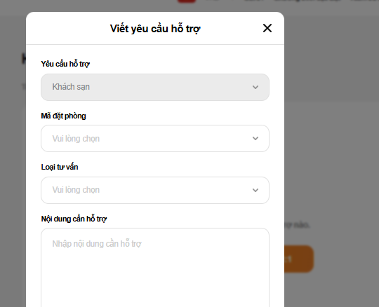 Cố định mặc định là “Khách sạn” trong mục “yêu cầu khách hàng”.