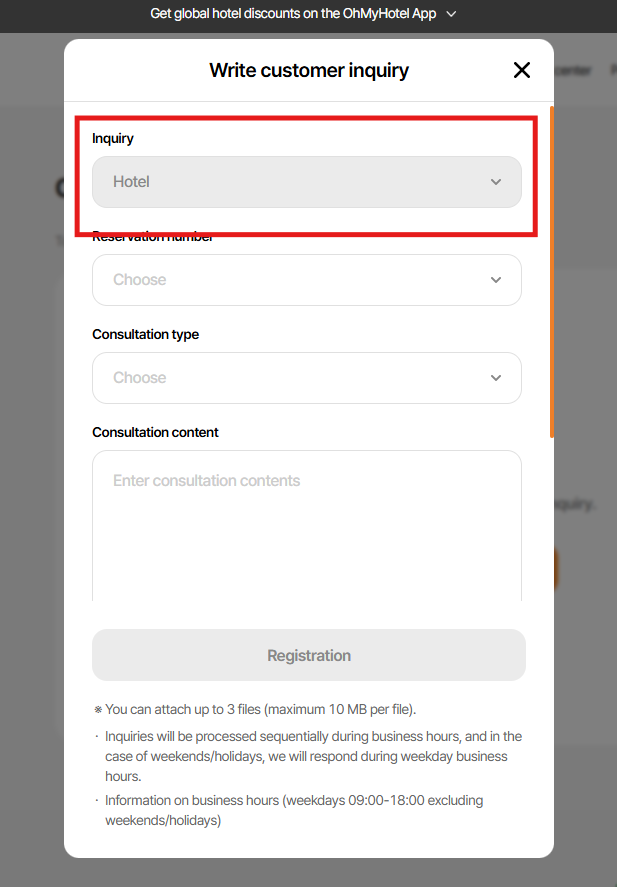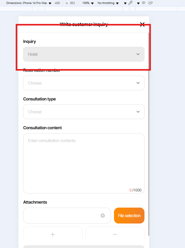 - Subject changed from Fix the default selection to "Hotel" in "Write Customer Inquiry". to [PC/MO] Fix the default selection to "Hotel" in "Write Customer Inquiry".