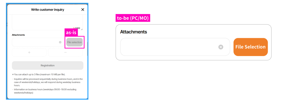 2. After select a file: button color is still orange or gray?