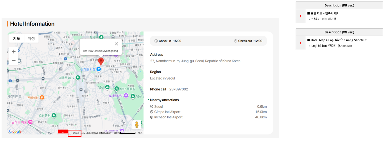 ■ Hotel Map > Loại bỏ tính năng Shortcut