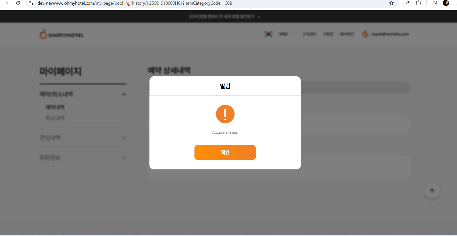 10. Click go to booking details btn > change to Log in Pop up in B2C page > fill ID & PW to sign in > Alert access deniedIT feedbacked that currently, templat of BK member didn't final design yet, so can not test. Will test later