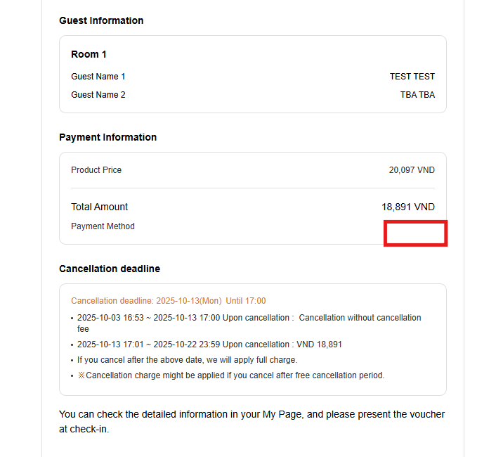 Phần thông tin thanh toán đang bị sai template, nó đang hiển thị template của BK cancel. Chỉnh lại mục này với lại chỗ booking status giúp em (comt bên trên - chỉnh cho cả tiếng anh và tiếng hàn)