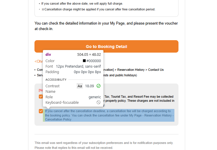 6. Extra cancellation policy notice (compare with figma), please confirm with Planning team to keep it or not (in KR ver)