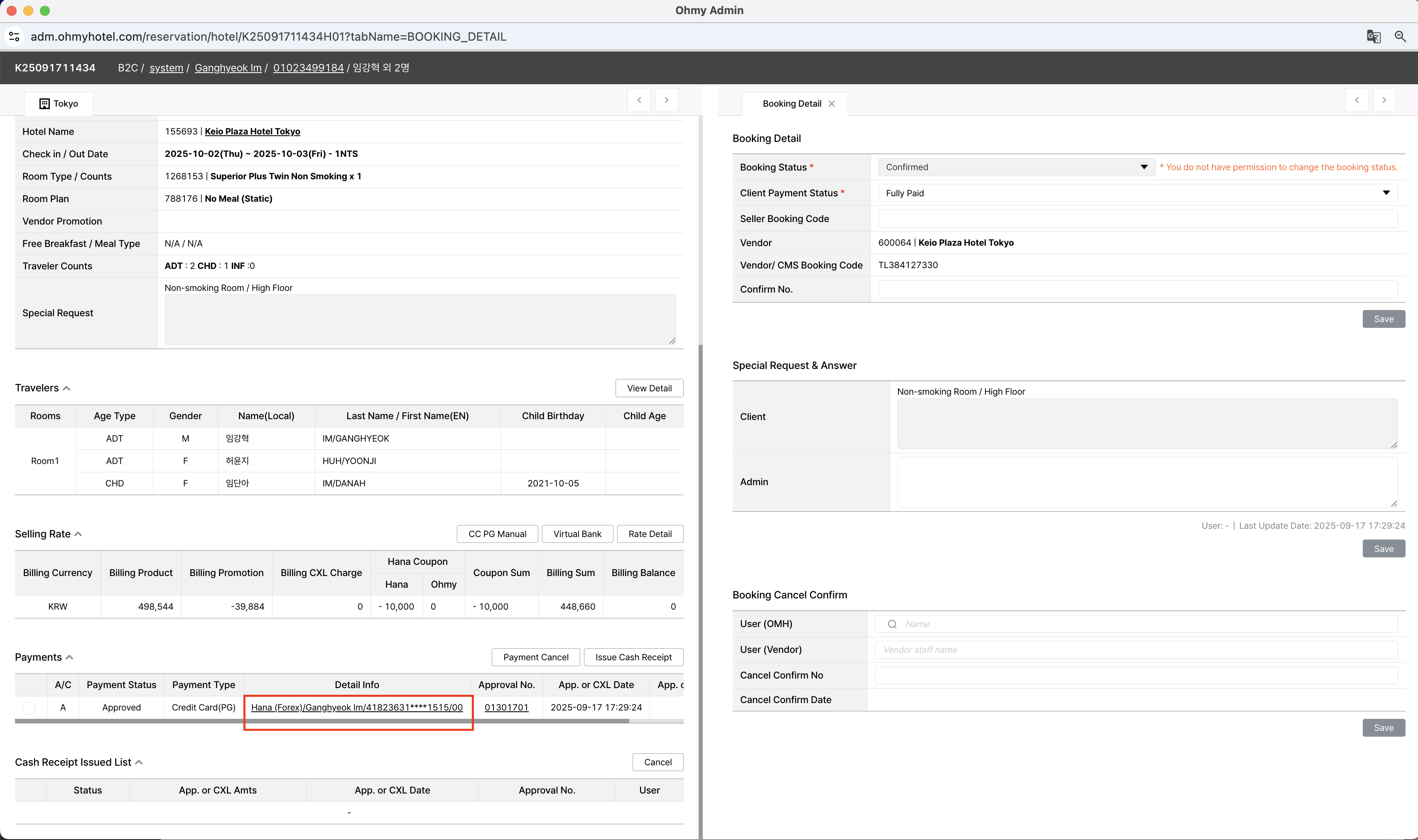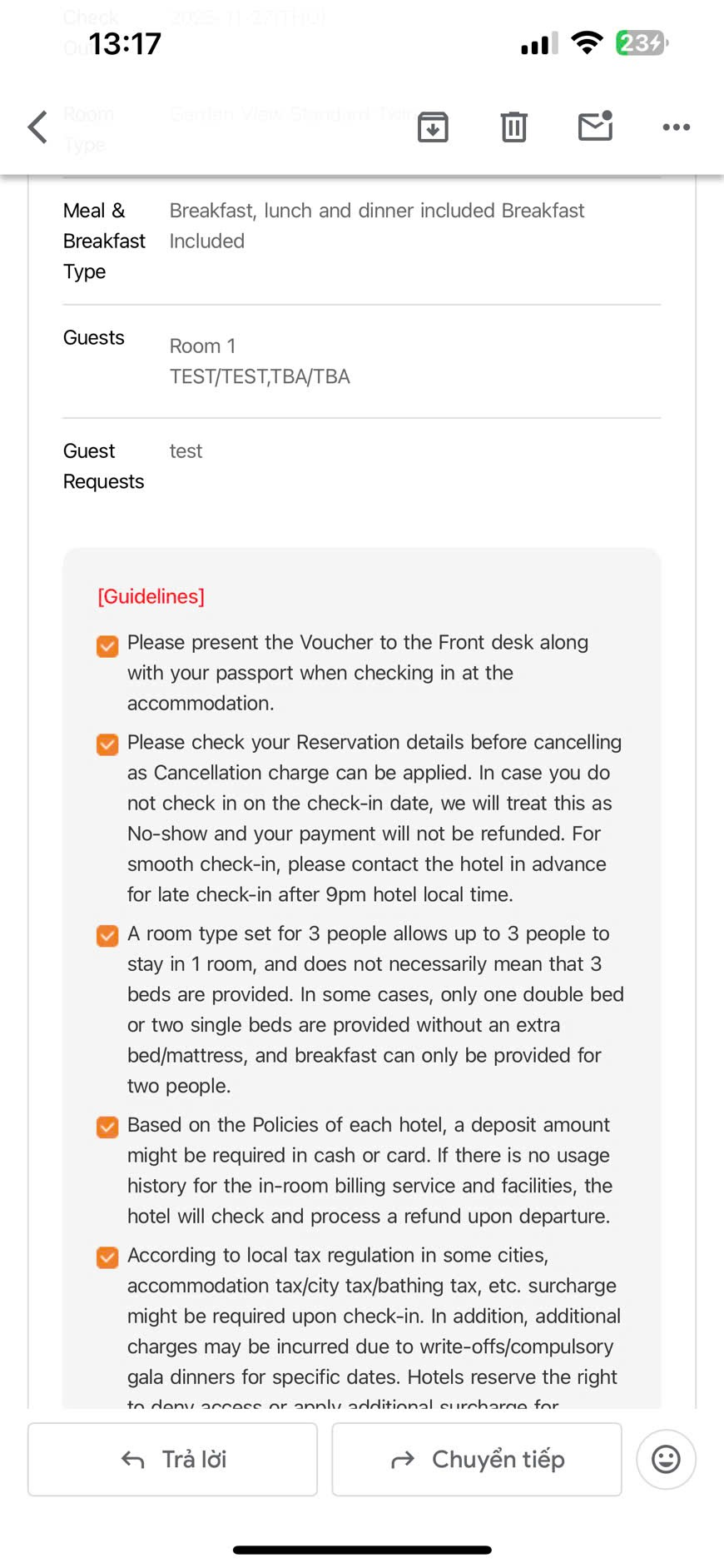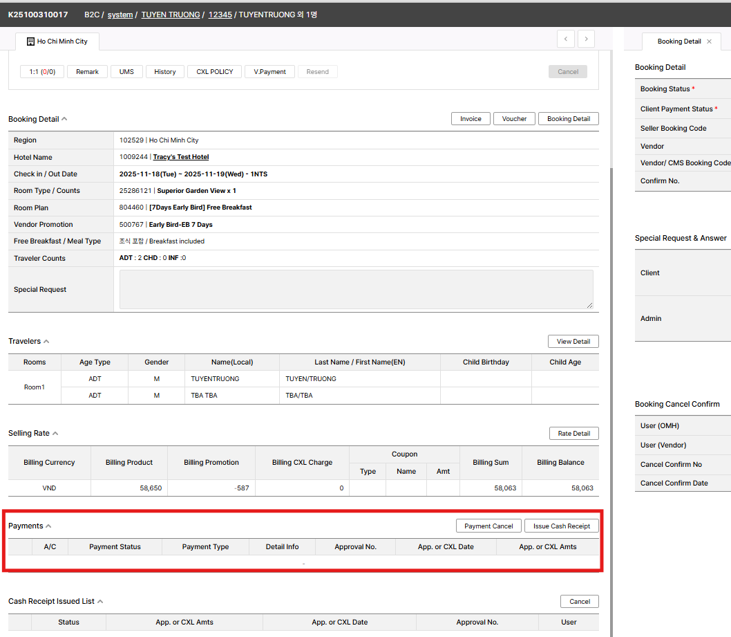 Can not check on Dev due to booking make through fake card so there is no payment infomation