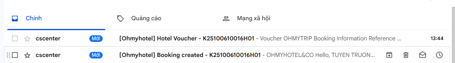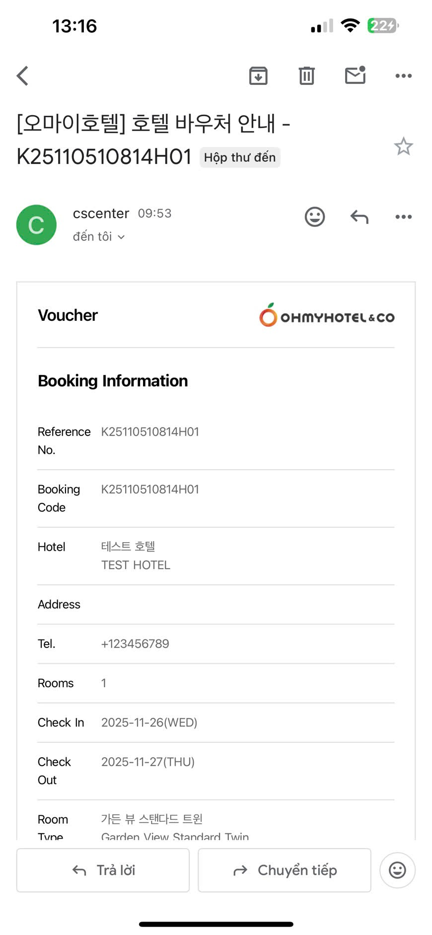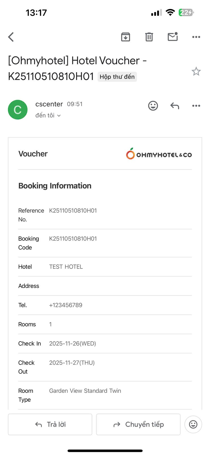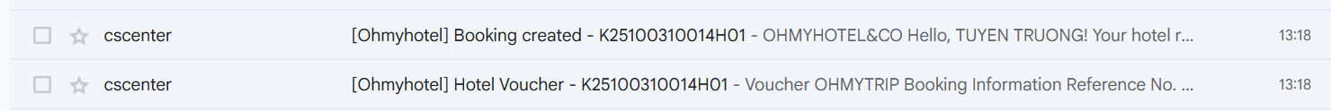[Ohmyhotel] Hotel Voucher - K25110510821H01.eml (29.2 KB) [Ohmyhotel] Hotel Voucher - K25110510821H01.eml PC - email Tracy Truong, 11/05/2025 04:59 AM