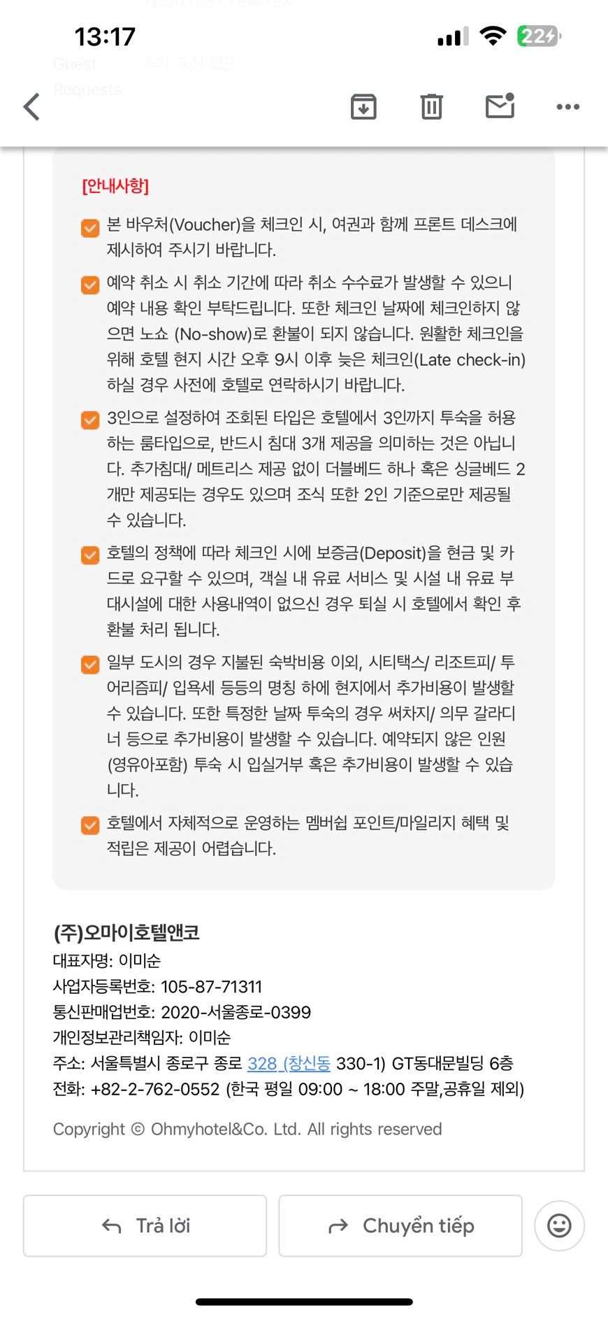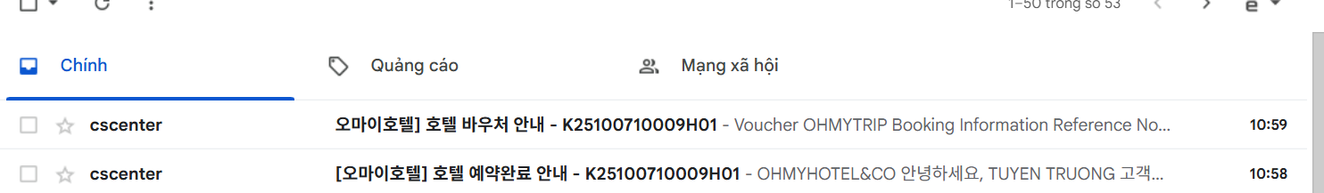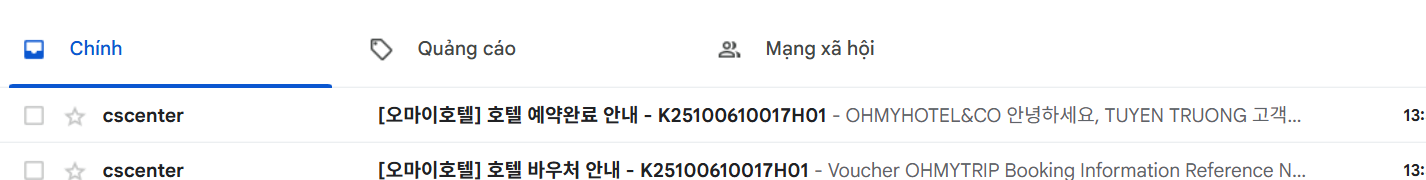 [오마이호텔] 호텔 바우처 안내 - K25110510814H01.eml (34.5 KB) [오마이호텔] 호텔 바우처 안내 - K25110510814H01.eml PC- email Tracy Truong, 11/05/2025 04:59 AM