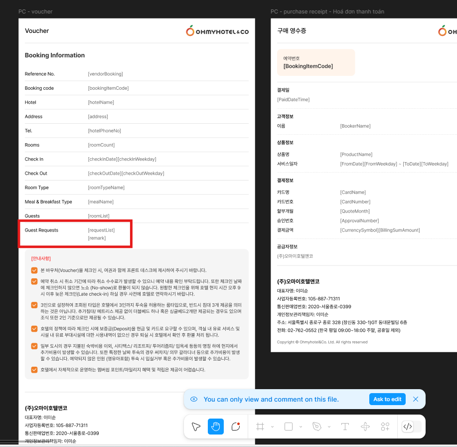 => please change to [오마이호텔] 호텔 바우처 안내 - ${BookingItemCode}