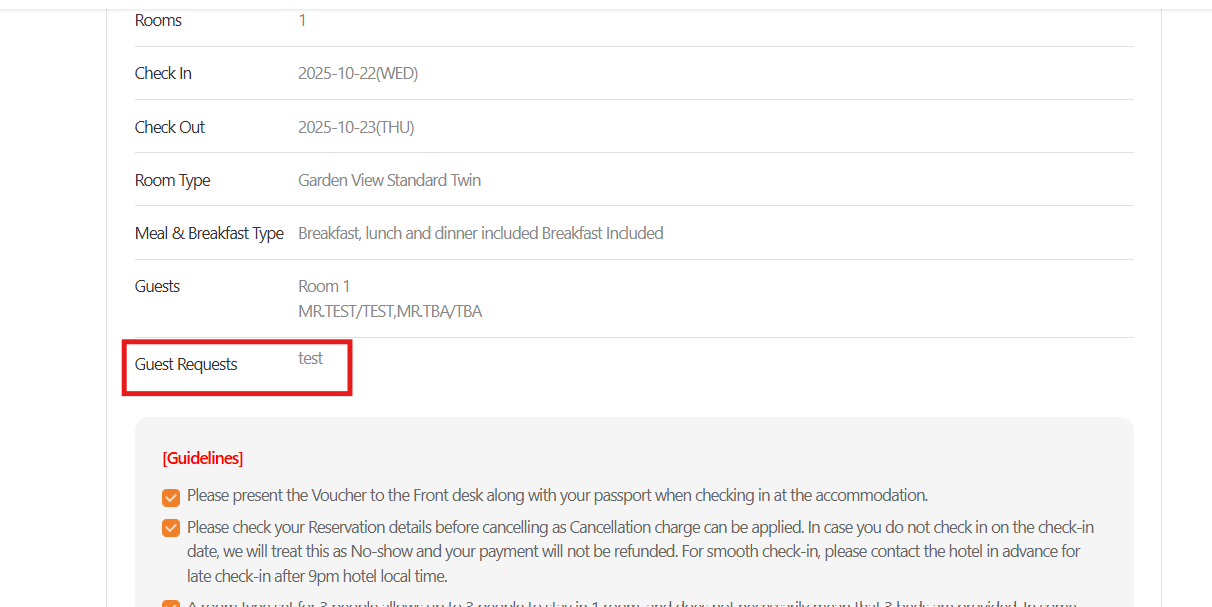 [requestList] and [remark] should be added at the very end of the table under the label Guest Requests, separated by a line break.