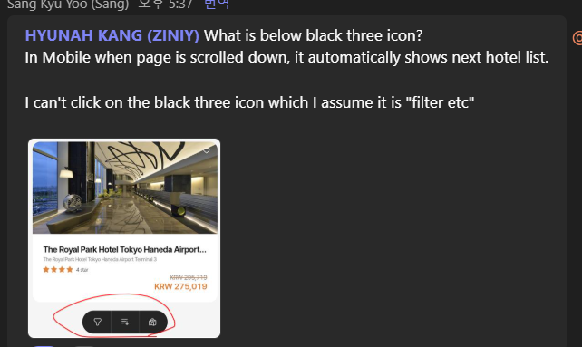 Filter icon cố định khi load hotel list.