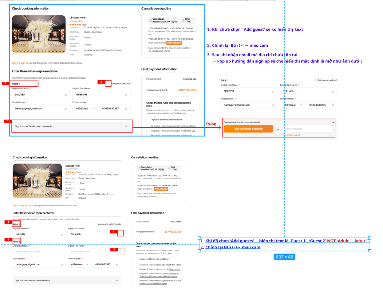 1. Khi đã chọn ‘Add guests’→ hiển thị text là ‘Guest 1’, ‘Guest 2’ NOT ‘Adult 1, Adult 2’