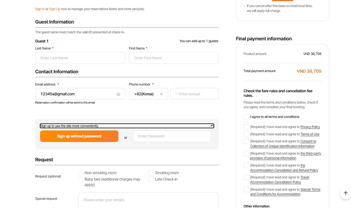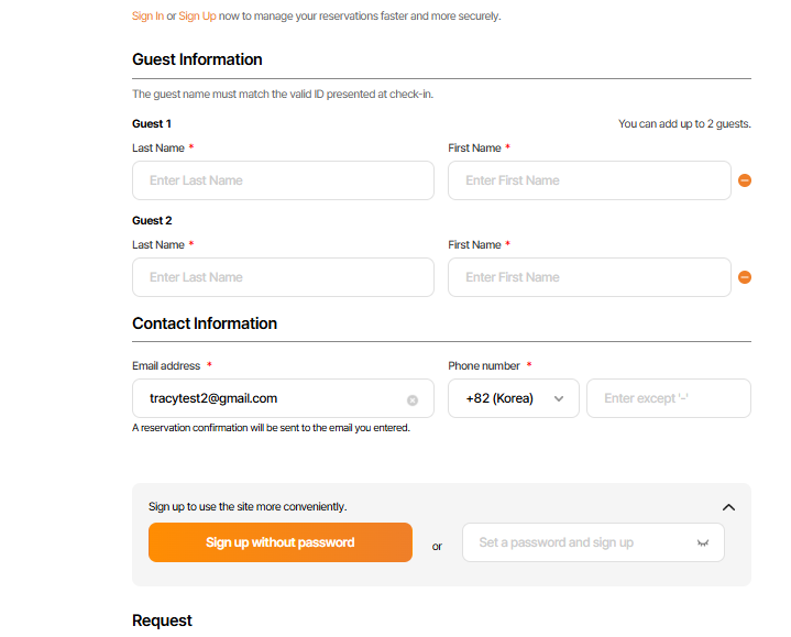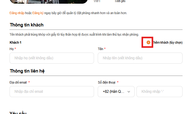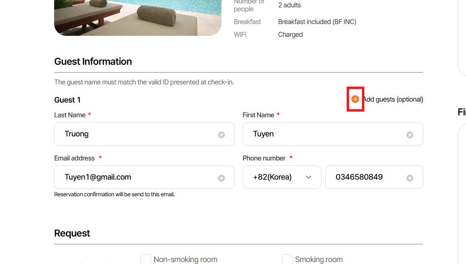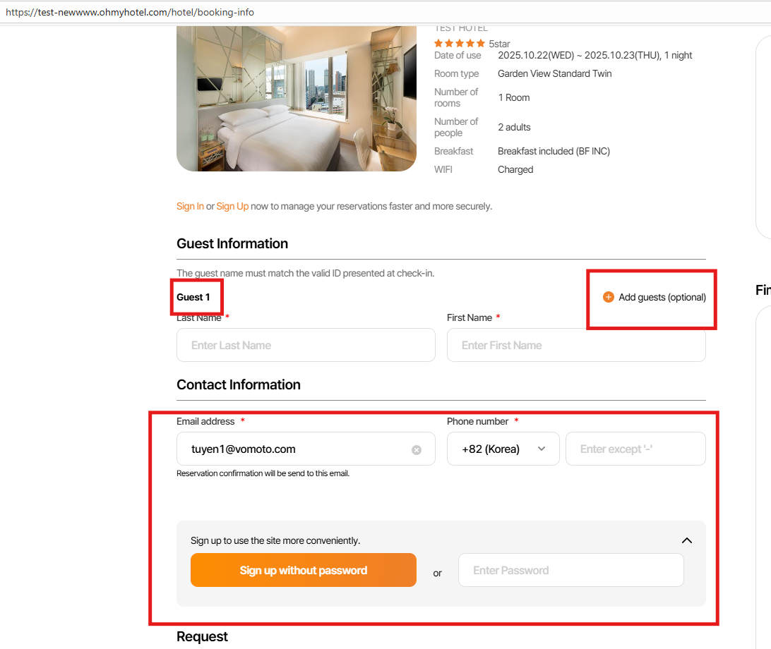 1. Khi chưa chọn ‘ Add guest’ sẽ ko hiển thị text