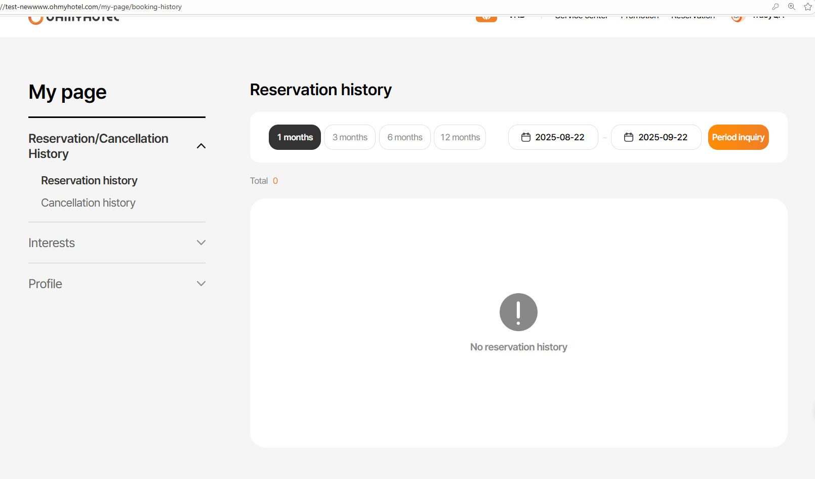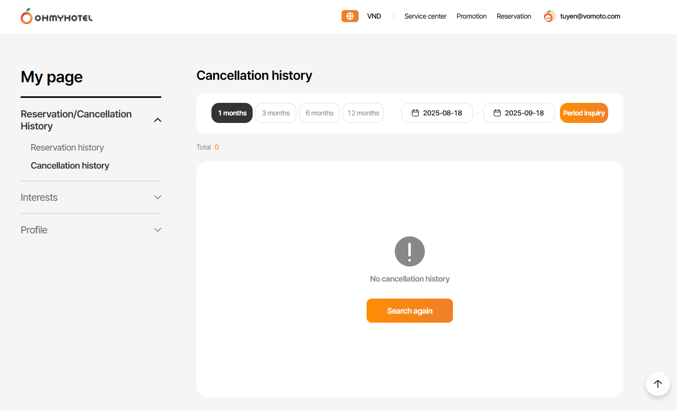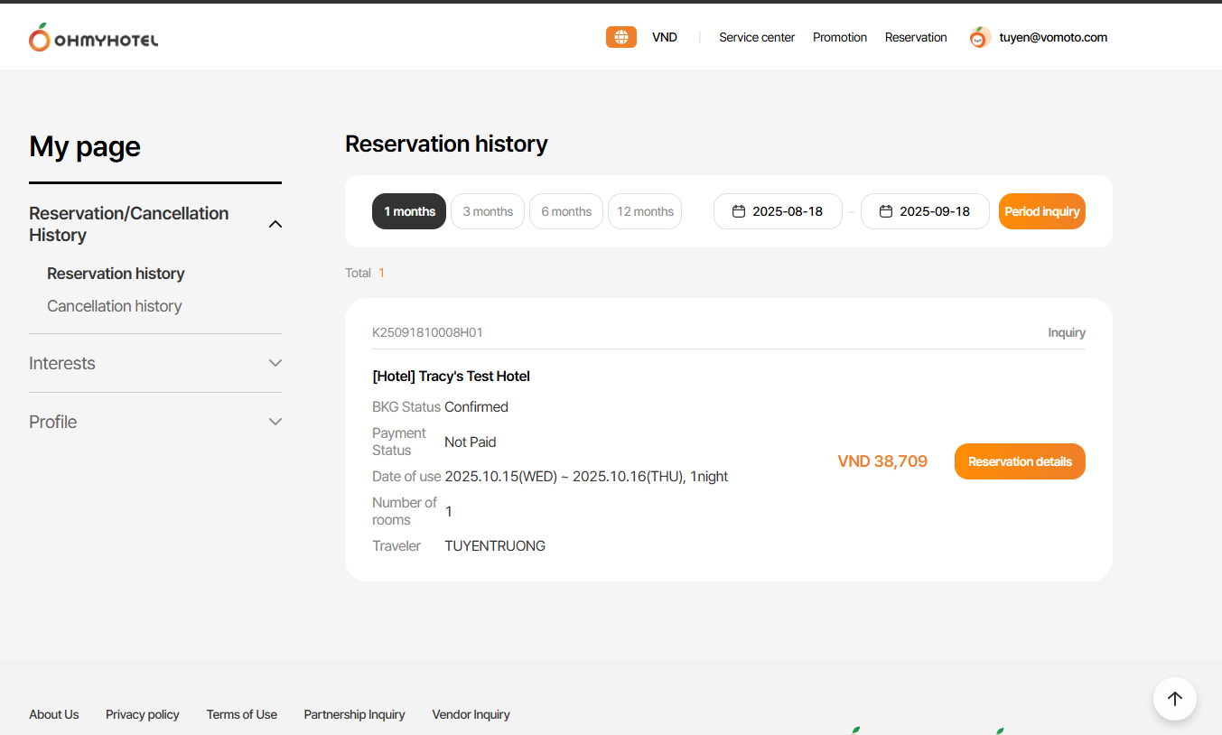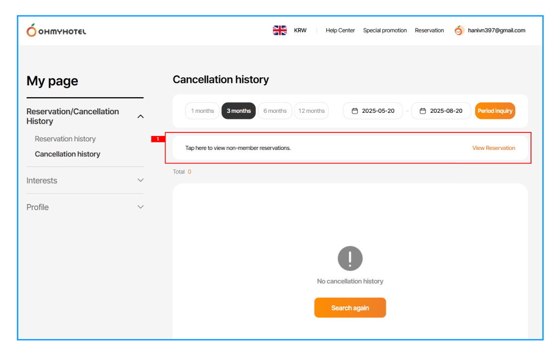 Trường hợp ko có lịch sử Booking của non-member thì sẽ ko hiển thị khu vực này