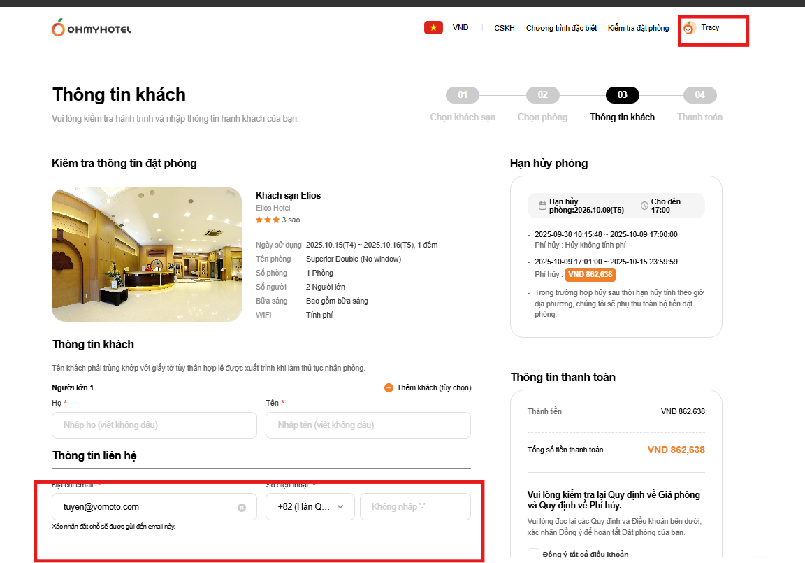 Khi user login → booking, hệ thống sẽ tự fill thông tin email thì