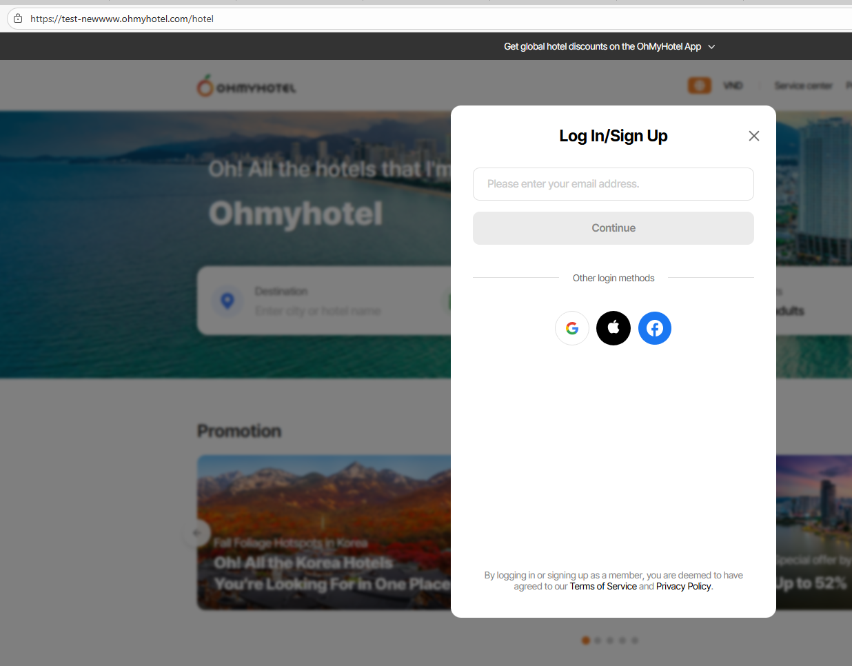 1. Có một số màn hình máy hiển thị Scrollbar trên pop up Login/Sign up