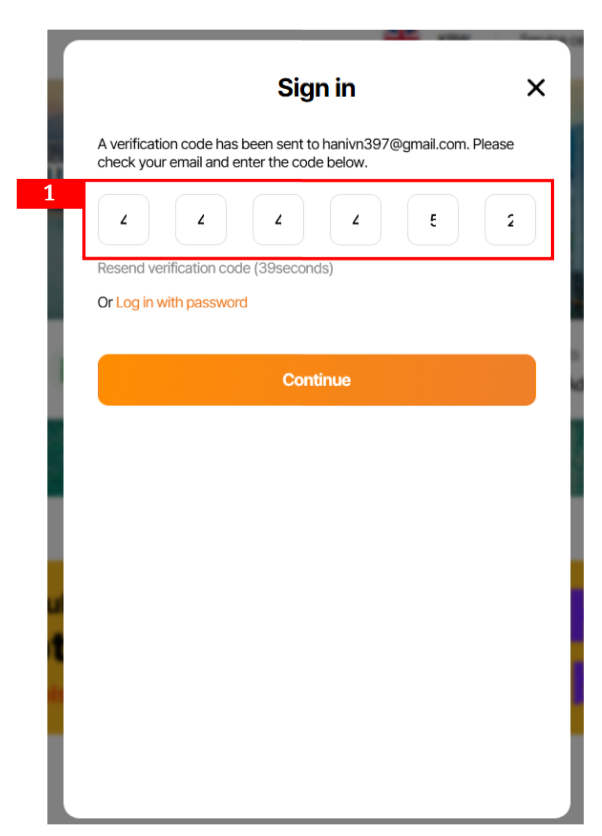 Khi nhập mã code để Sign in, mã số ko hiển thị đầy đủ mà bị mất nửa bên phải