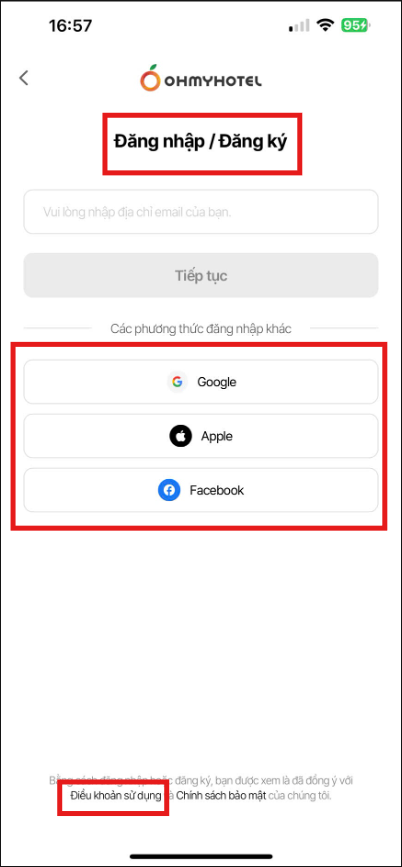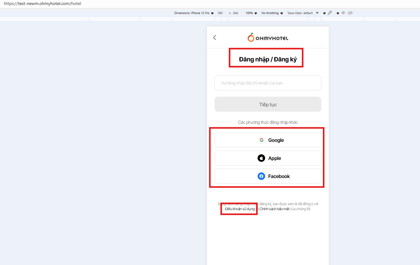 3. Chỉnh text “Điều khoản dịch vụ” →”Điều khoản sử dụng’ (đồng nhất với nội dung phần Footer)