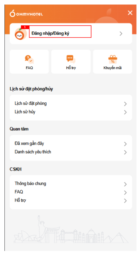 Thêm dấu cách vào trước và sau dấu gạch chéo → Đăng nhập / Đăng ky