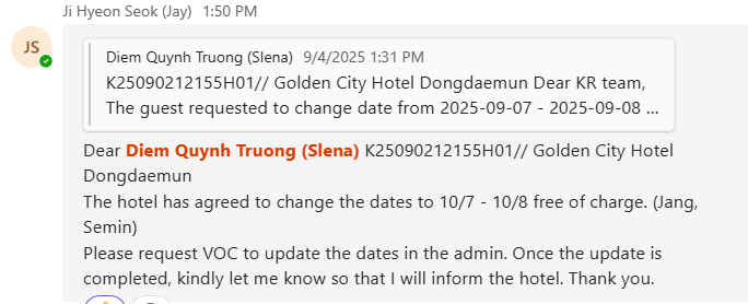 closed[VOC]: DATE CHANGE REQUEST// BOOKING 4999006283120713541// K25090212155H01