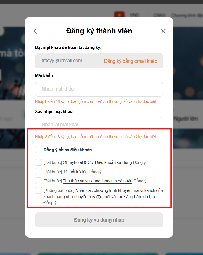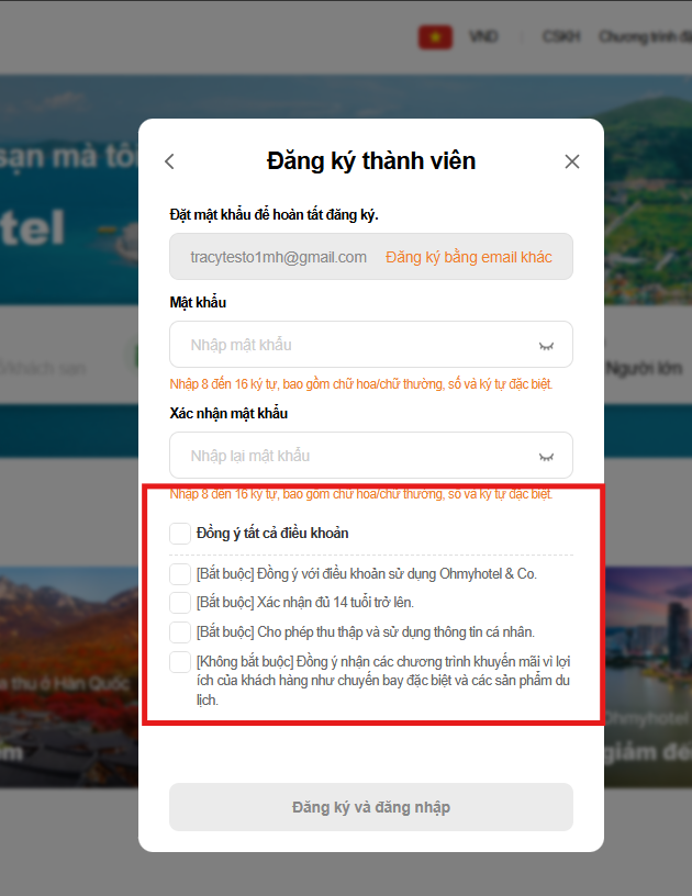 [Bắt buộc] Đồng ý với điều khoản sử dụng Ohmyhotel & Co.