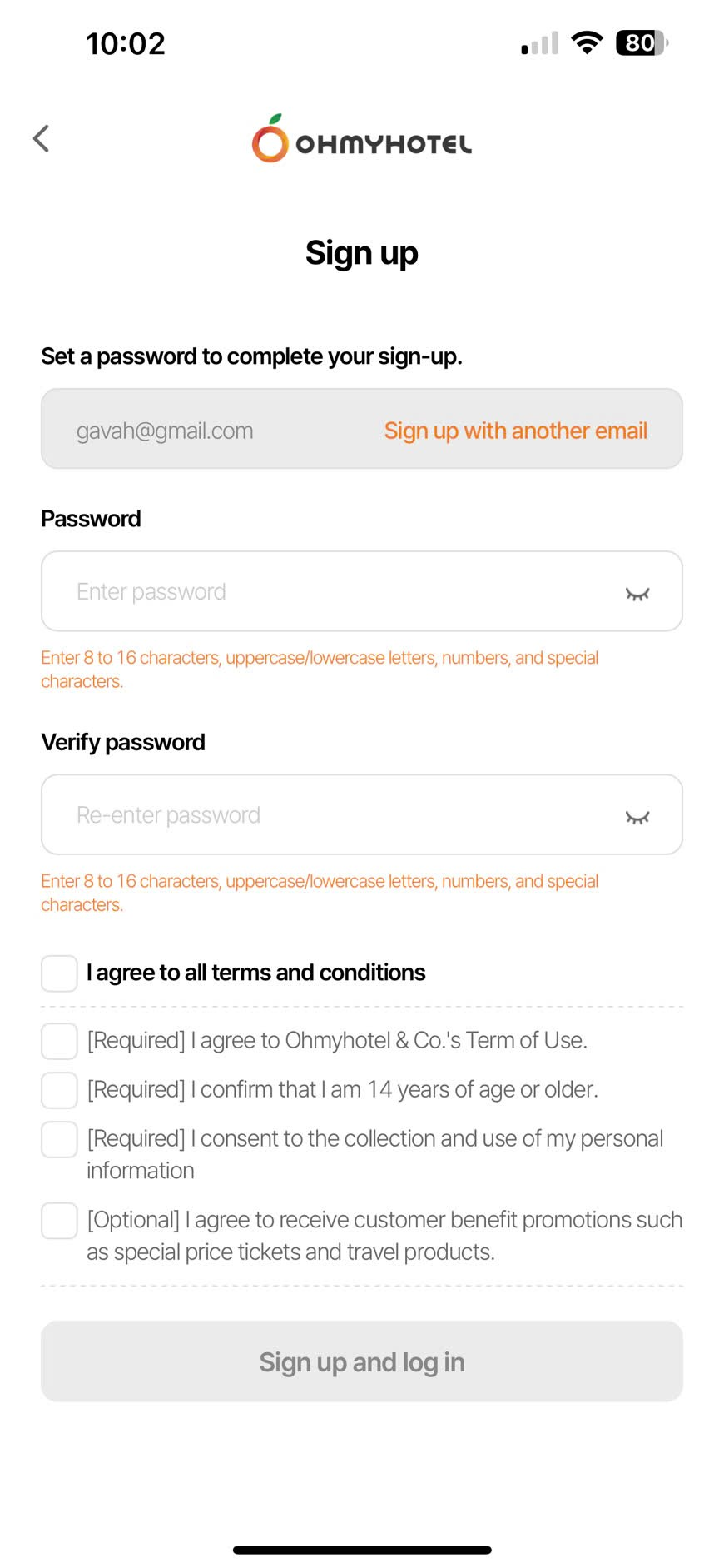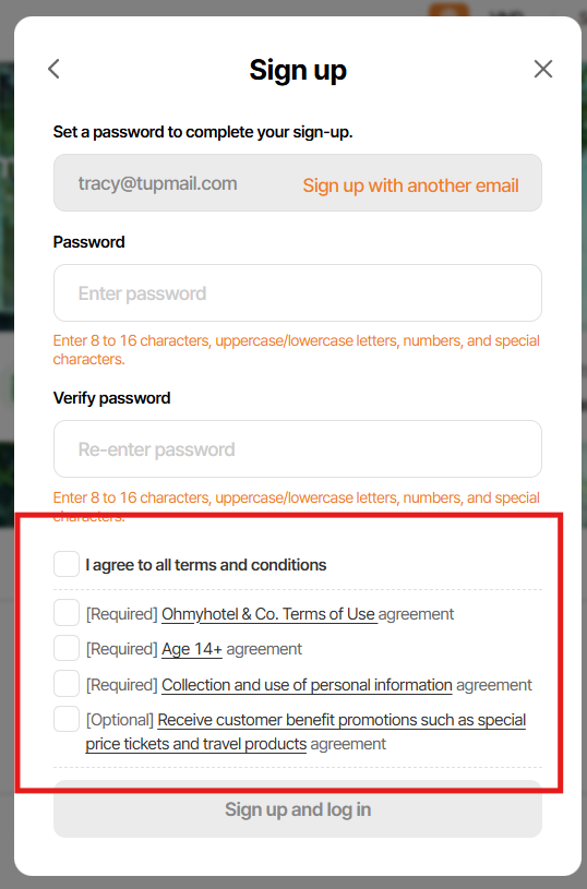 [Required] I agree to Ohmyhotel & Co.'s Term of Use