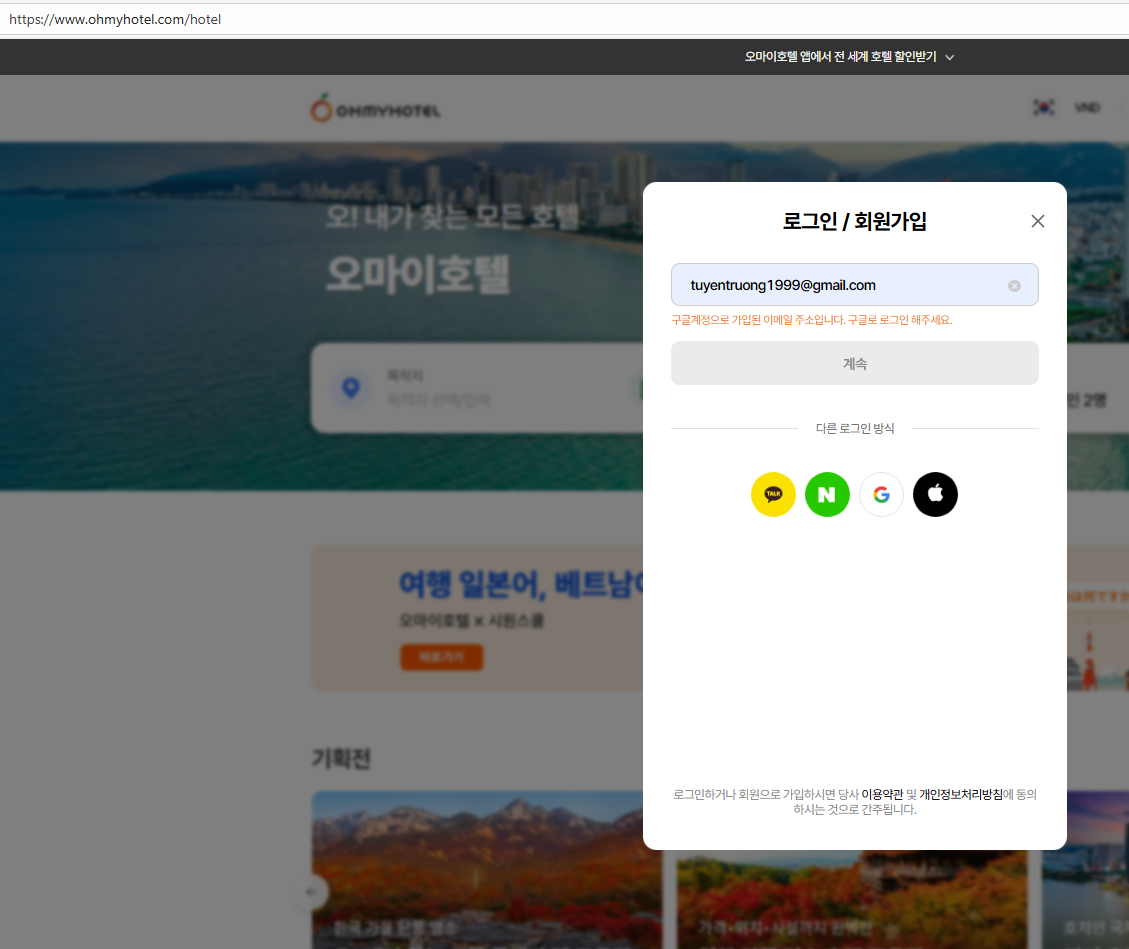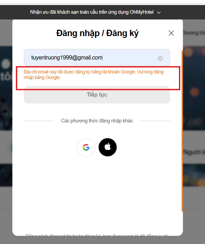 Requirement: Đây là địa chỉ email đã được đăng ký bằng tài khoản Google. Vui lòng đăng nhập bằng Google.