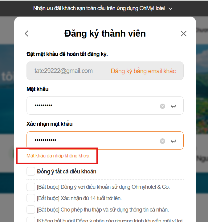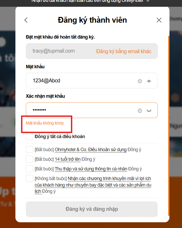 To-be: Mật khẩu đã nhập không khớp