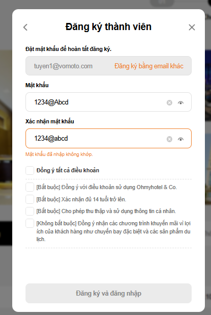 As-is: Mật khẩu không khớp