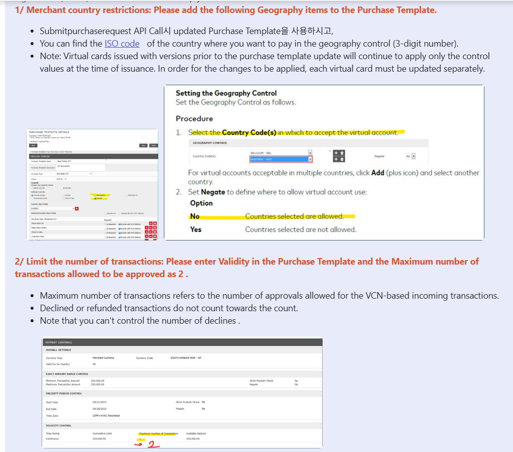 open[VCC update] Update VCC Merchant country restrictions and Limit the number of transactions