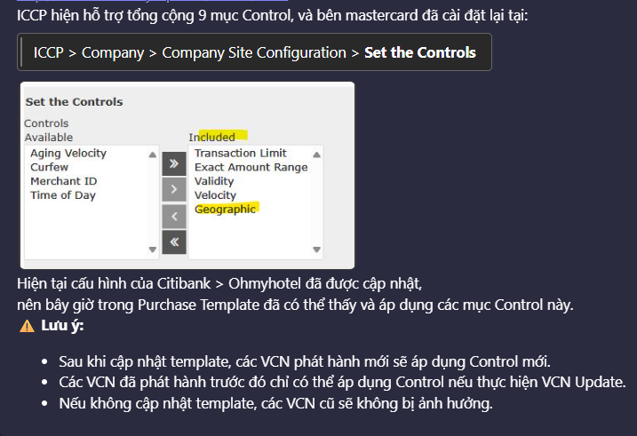 Anh cần hỏi thêm: Ở trang Citibank mếu bật thêm GEO Control trên thì Template cũ trên PROD có chạy được hay không?