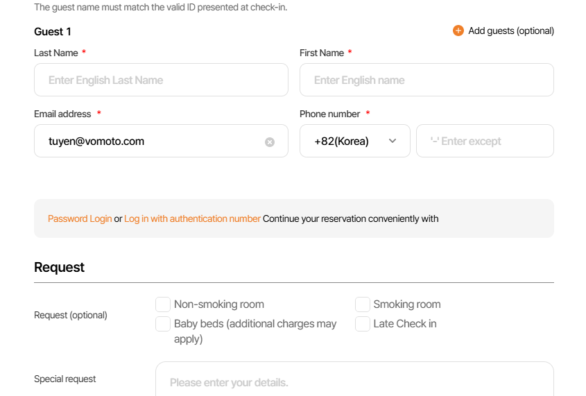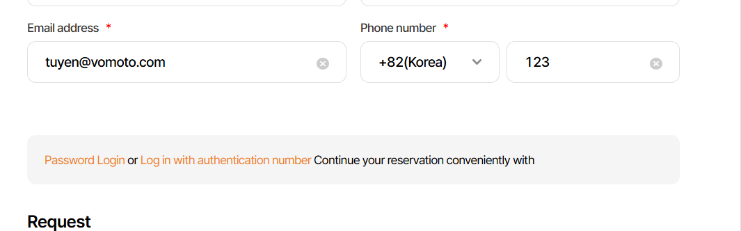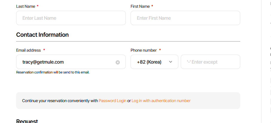 As-is: Password Login or Log in with authentication number Continue your reservation conveniently with