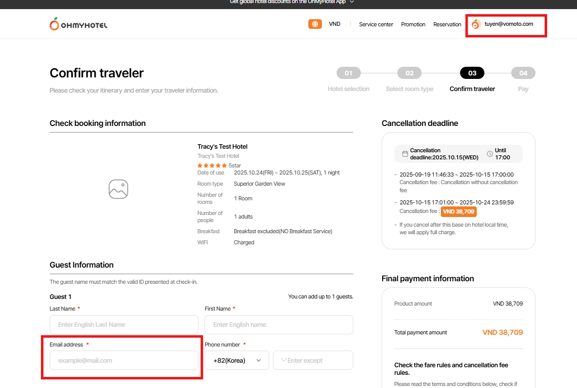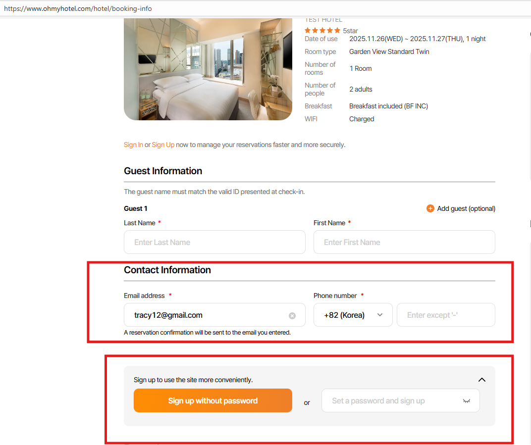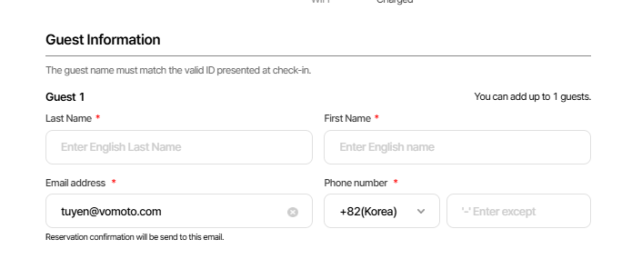 Guest information - Email address field