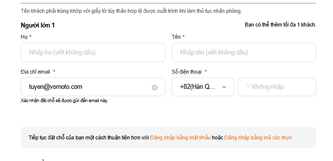To-be: Tiếp tục đặt chỗ của bạn một cách thuận tiện hơn với Đăng nhập bằng mật khẩu hoặc Đăng nhập bằng mã xác thực