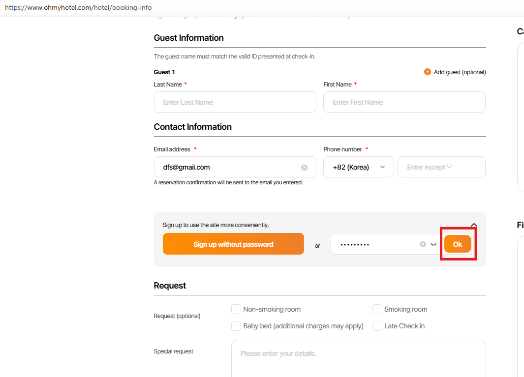 Input PW in Non member booking pop up - "Ok" btn is out of frame