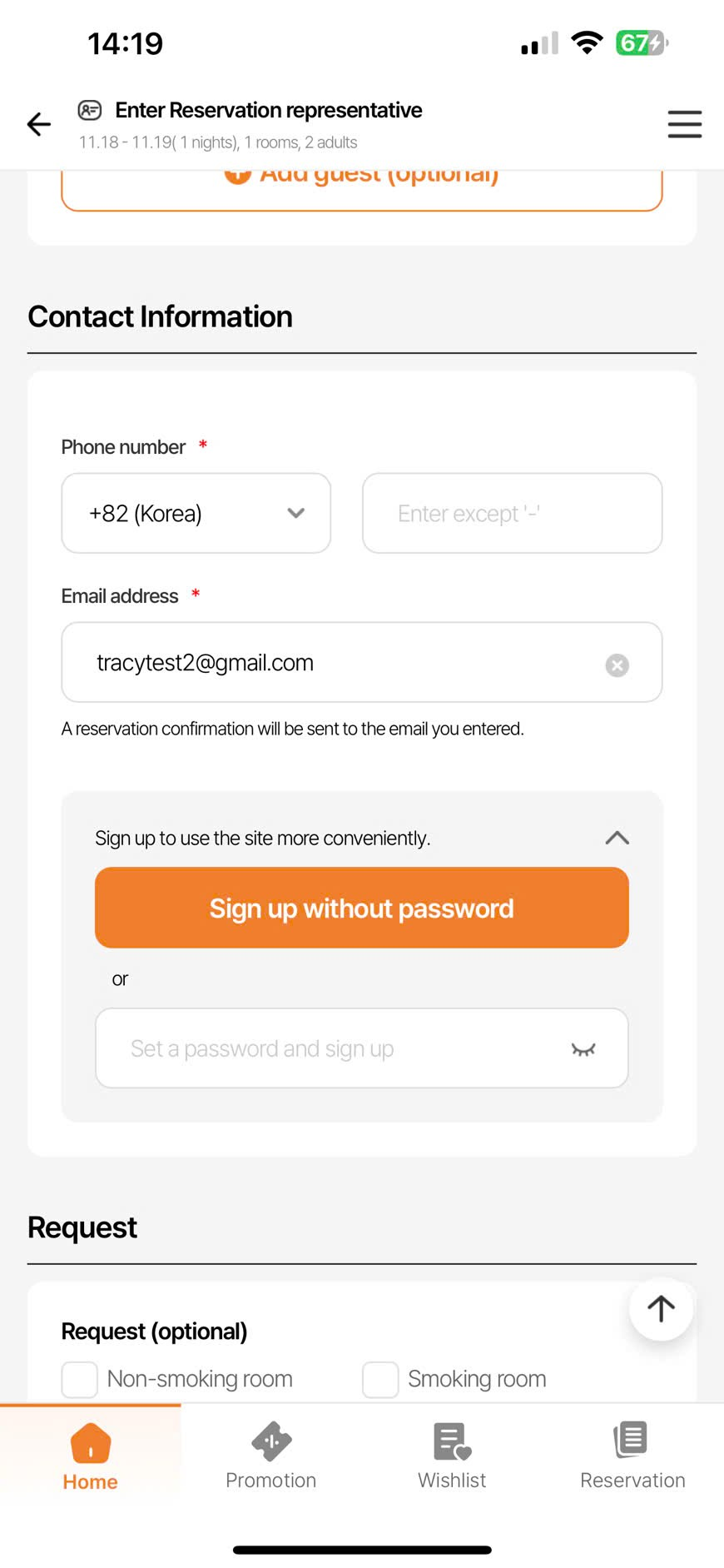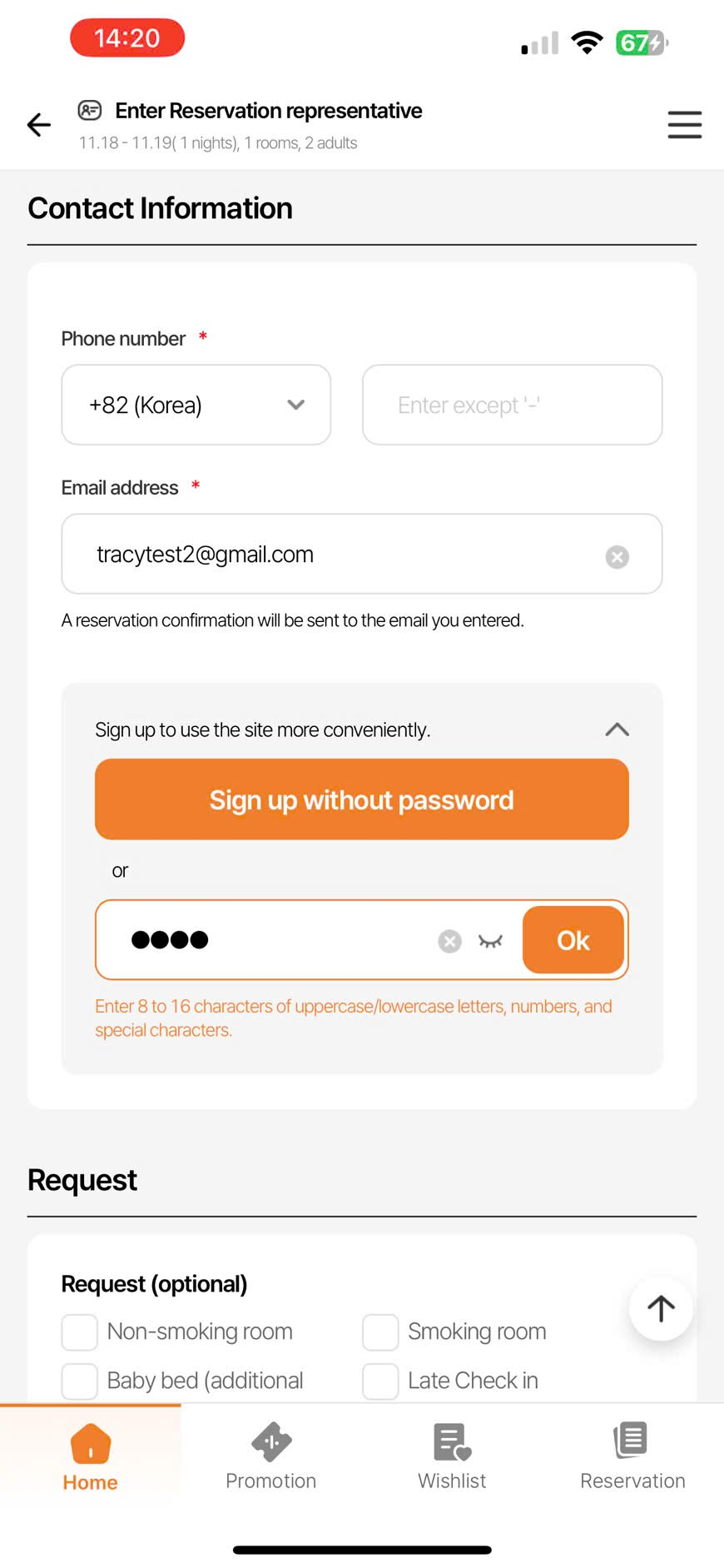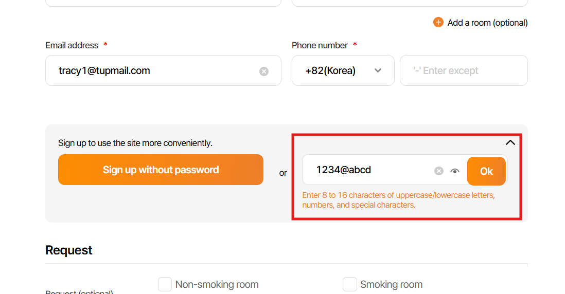 Set up PW & sign up field
