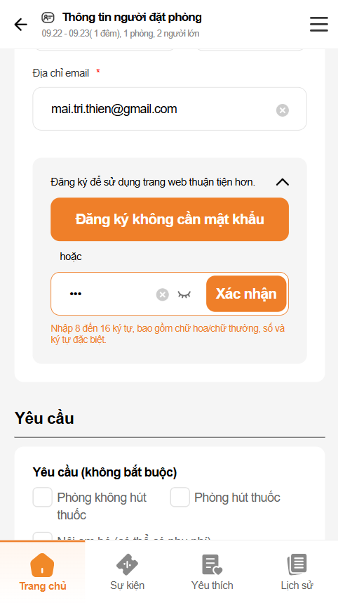 Nếu mật khẩu nhập không hợp lệ và click [Confirm]