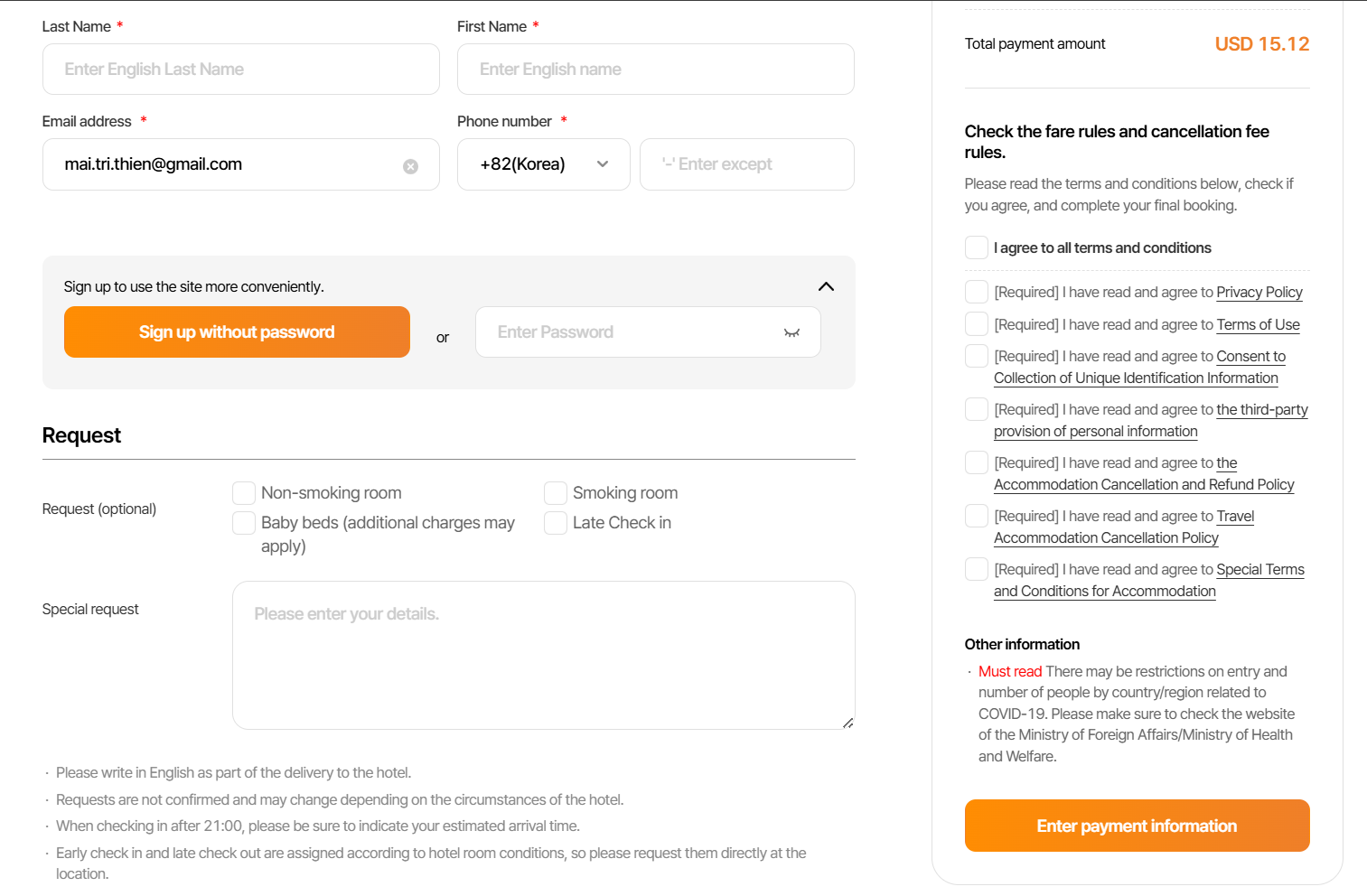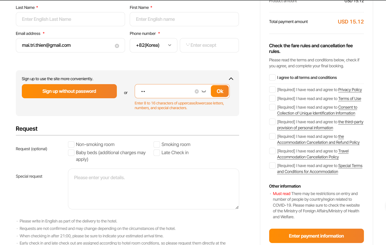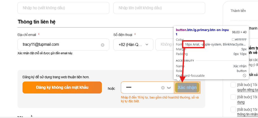Chỉ khi nhập đúng password thì khi click button mới chuyển đến popup [Terms agreement]