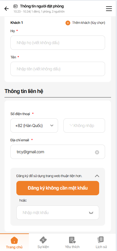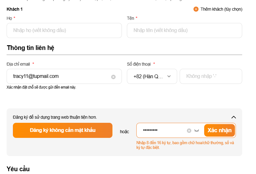 Border của field nhập chuyển sang màu cam.