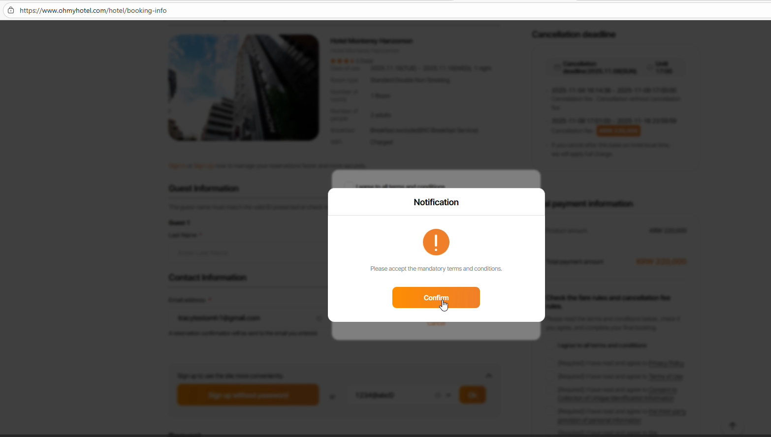 1st times: Input incorrect PW: Error message appear & click Ok btn do not change to term agreement => ok but the border do not change to orange. After that, change to correct PW, the border color changed