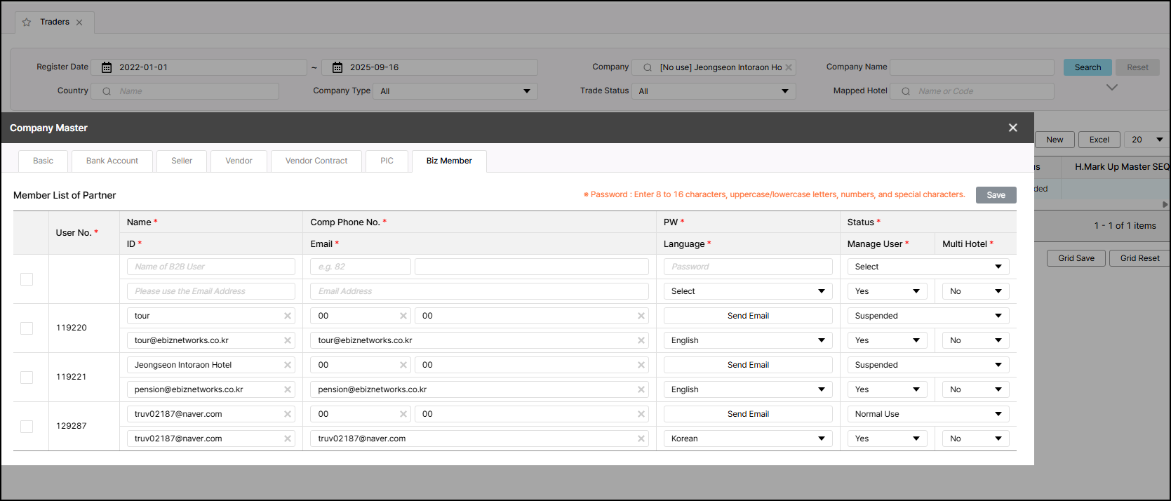 closed[VOC] [KR SCM] Please change the BIZ member ID 601959 - [No use] Jeongseon Intoraon Hotel