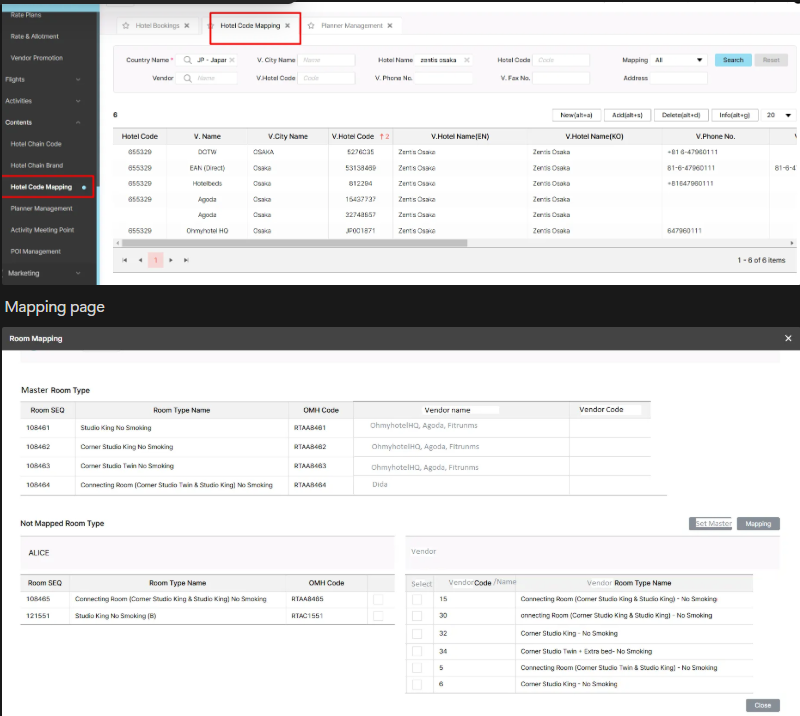 Filter : search country name, hotel name, hotel code (already mapped vendor 3rd party)