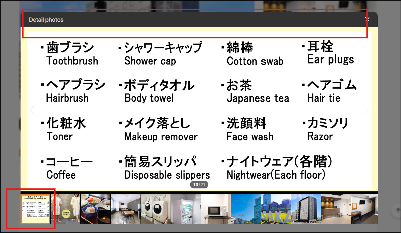 As you can see the image have title as Complimentary Amenity Bar on top of image when you select it, the displaying is missing title on top of image.