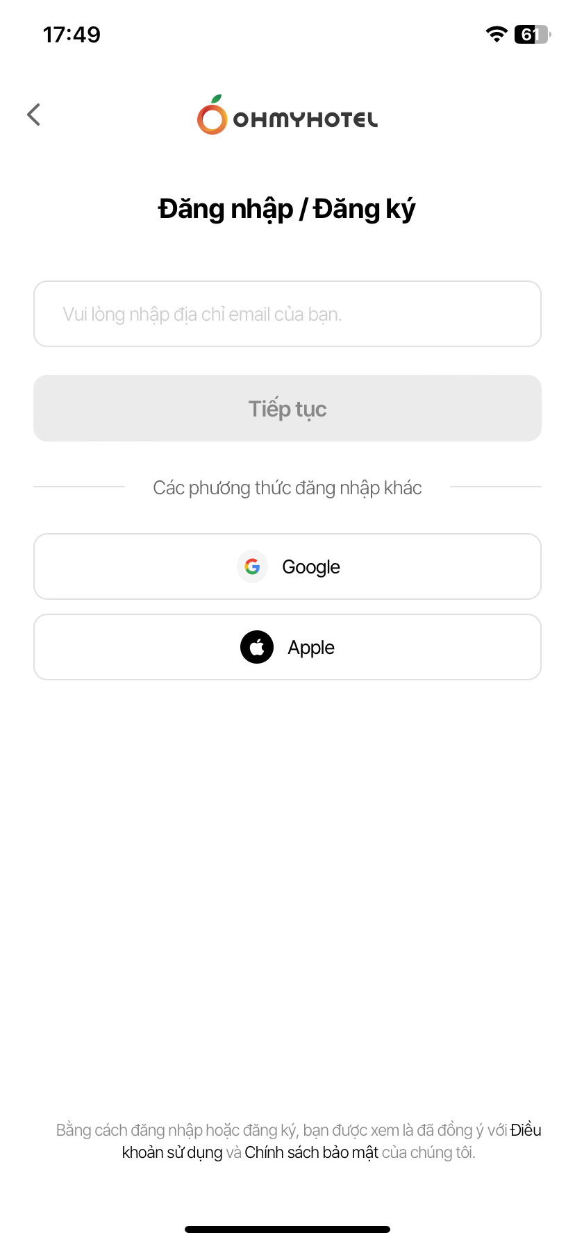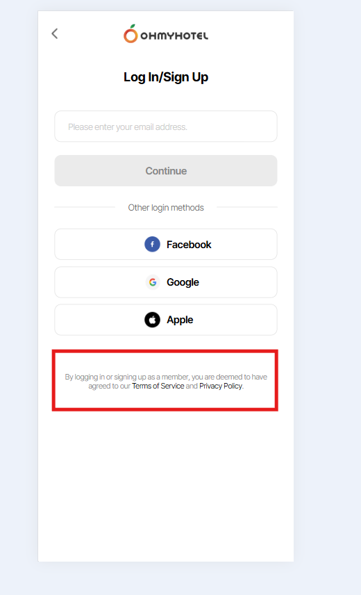(MO) Sign up/ Login popup - terms of use notice should be located at the bottom of the page.