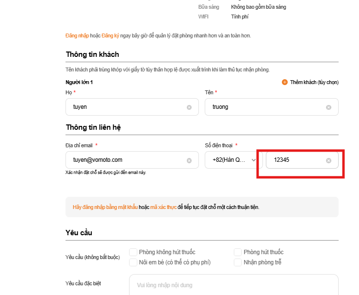 Already added 10 digits but can not make booking. Border field change to orange